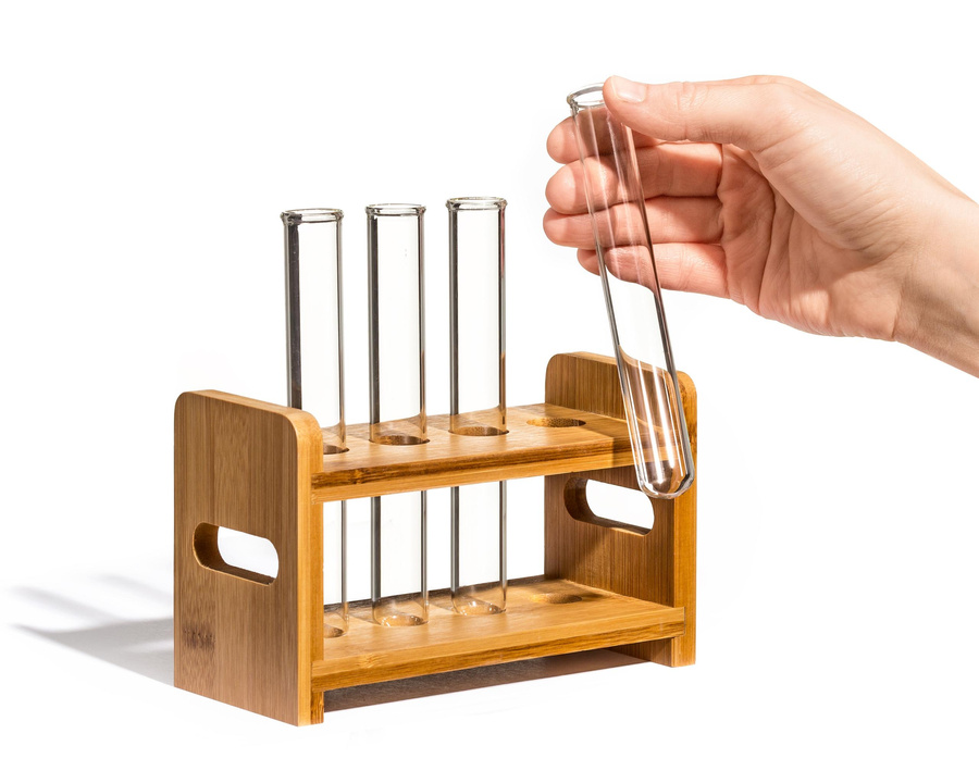 Jak impreza, to nie może być nudno, jak kieliszki, to nie musi być nudno ;) I takie są właśnie nasze... probówki imprezowe czyli śmieszna, a zarazem praktyczna alternatywa dla zwykłych kieliszków. W zgrabnym stojaku bambusowym jest miejsce na cztery słusznej wielkości probówki, które możesz uzupełnić trunkami wedle gustu i uznania, a następnie je elegancko wyeksponować. Aż ręka sama rwie się by sięgać po taką probówkę pełną wesołych i kolorowych procentów :)