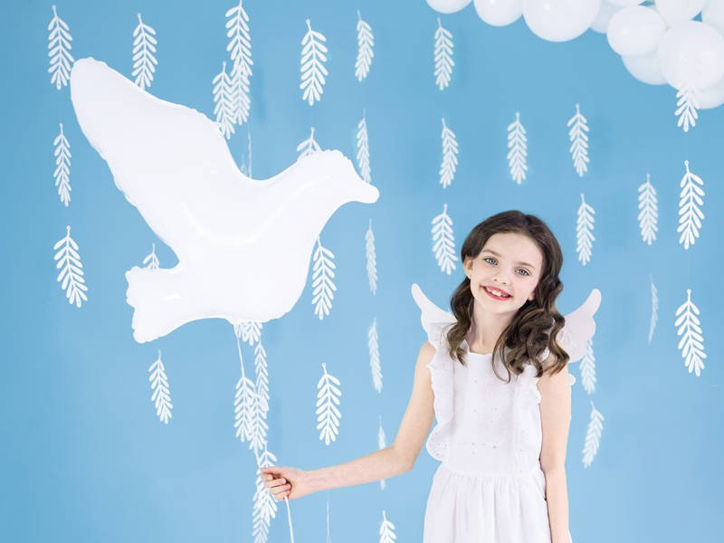 - Piękny i elegancki balon w kształcie białego frunącego gołąbka. Balon wysokiej jakości, w oryginalnym opakowaniu. Wymiary: ok. 77 x 66 cm (30 x 26").