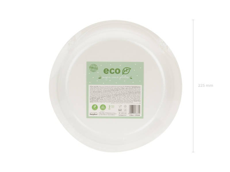 • Talerzyki wykonane ekologicznej trzciny cukrowej. Talerzyki bardzo uniwersalne i eleganckie, w kolorze białym. Średnica ok. 22,5 cm.