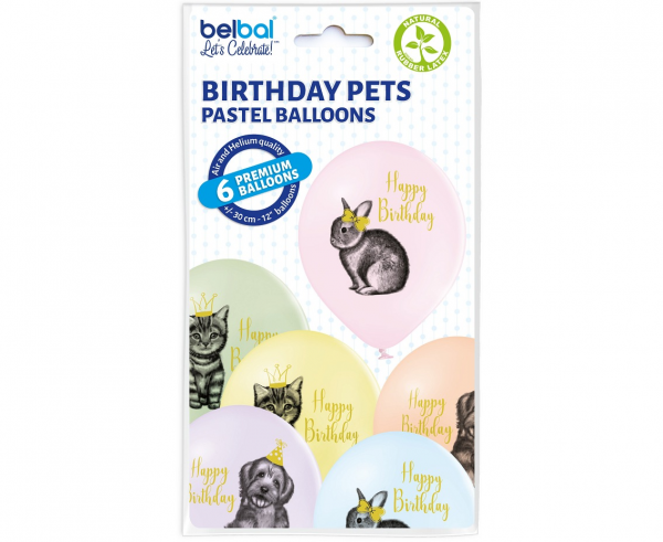 Balony lateksowe Happy Birthday zwierzaki piesek kotek 6 szt.