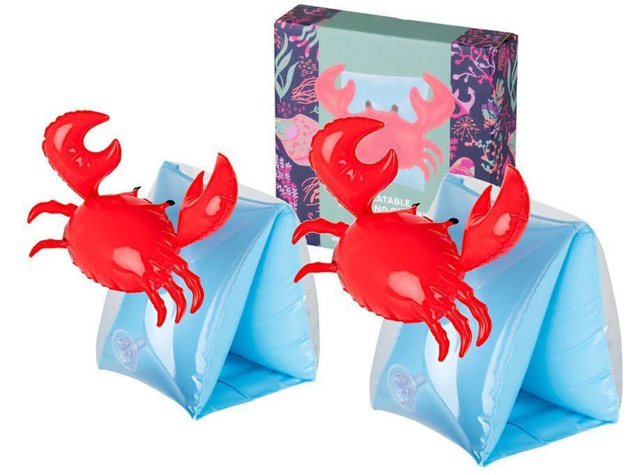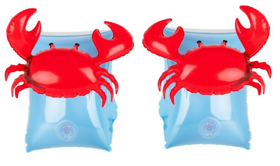 - Dmuchane rękawki dziecięce do pływania w oryginalnym wzorze. Niezbędny przedmiot podczas wypoczynku dziecka nad wodą oraz nauki pływania. Posiadają dwie komory powietrzne. Wykonane z plastiku. Dostępne w kolorze niebieskim z wizerunkiem kraba.