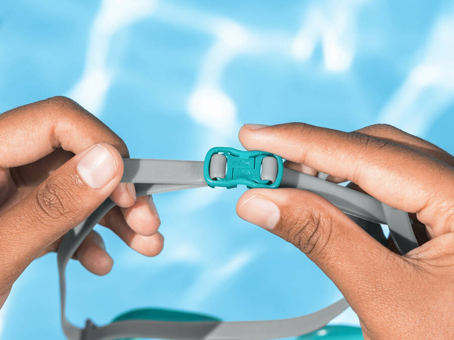 Aby maksymalnie dostosować okulary do potrzeb użytkownika, można wyregulować silikonowy pasek.