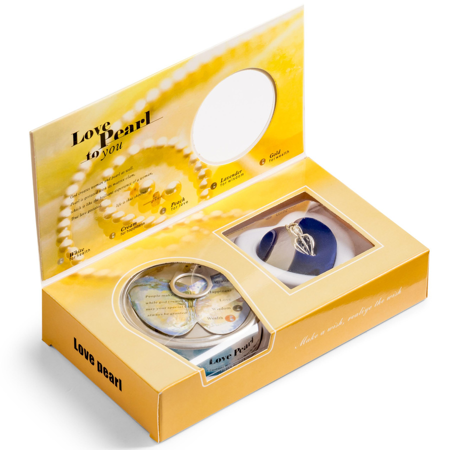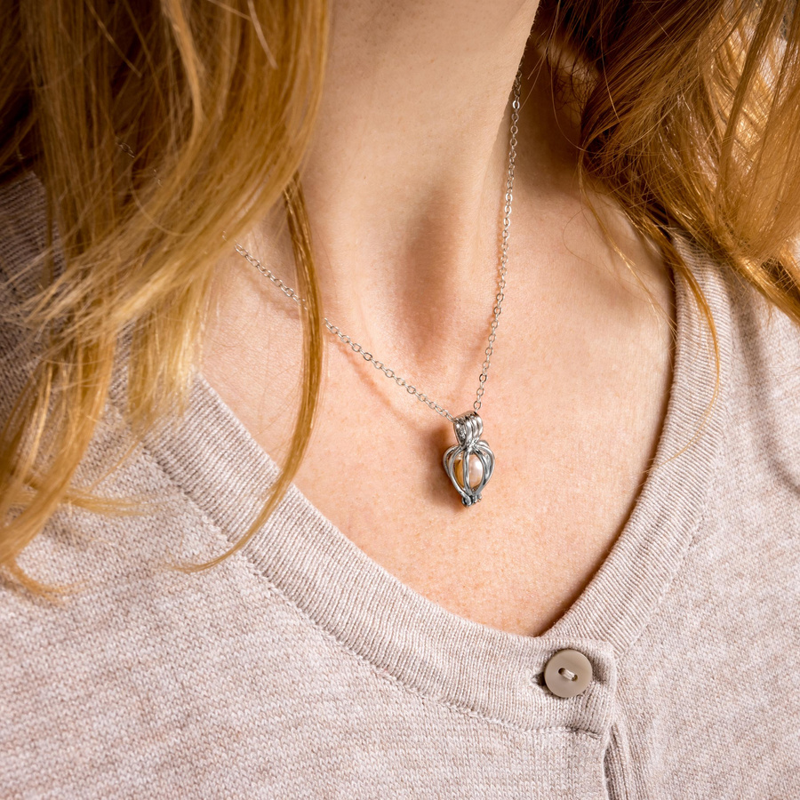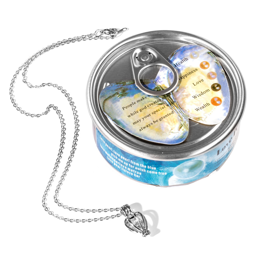 - zestaw zawiera pojemnik z małżą perłową oraz naszyjnik z wisiorkiem w kształcie koszyczka.