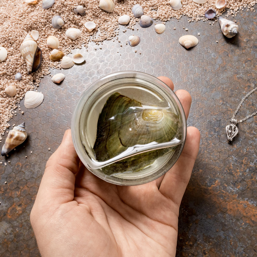 Prawdziwa, naturalna i niepowtarzalna perła do samodzielnego wydobycia z muszli. Każda perła ma niepowtarzalny odcień koloru, który poznamy dopiero po jej wydobyciu z muszli: