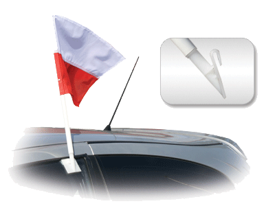 • Flaga samochodowa z plastikowym uchwytem, wymiar flagi: 31x45cm, patyczek 44cm.