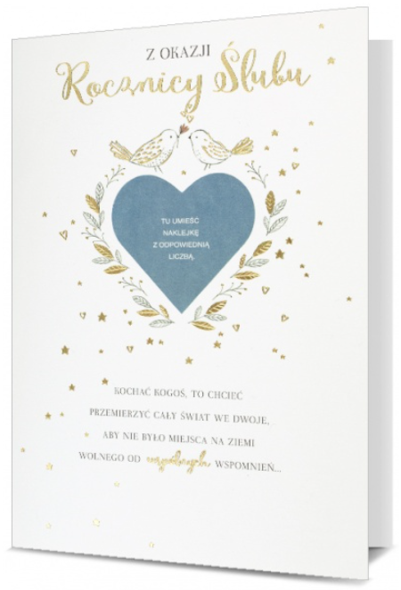 Przeznaczony specjalnie na Rocznicę Ślubu. W środku umieszczone są krótkie życzenia.