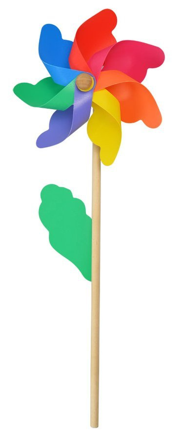 Wiatraczek posiada patyczek, dzięki któremu łatwo go umocować przy domu, oknie, wygodnie go trzymać.