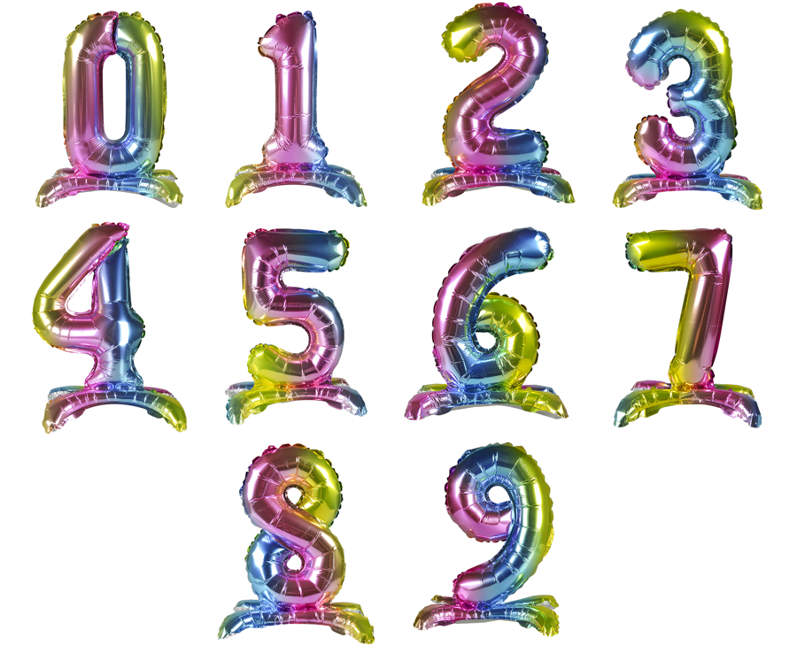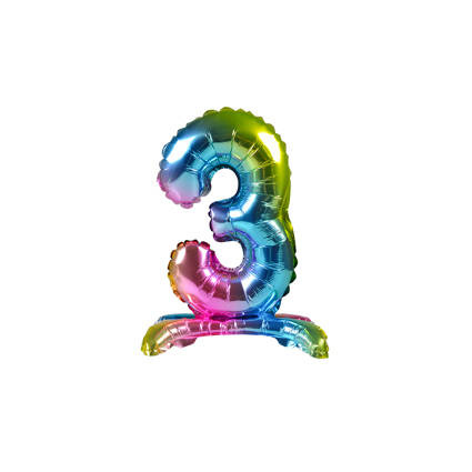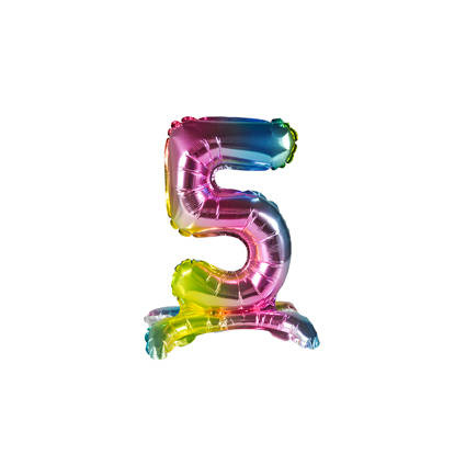 BALON foliowy stojący CYFRA tęczowa 38 cm PartyTime