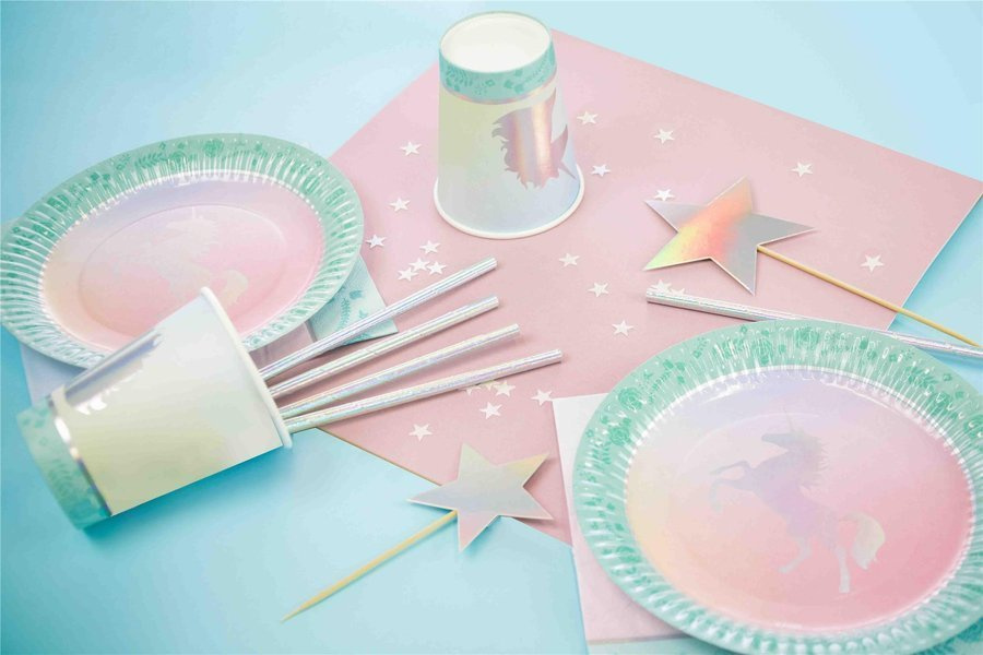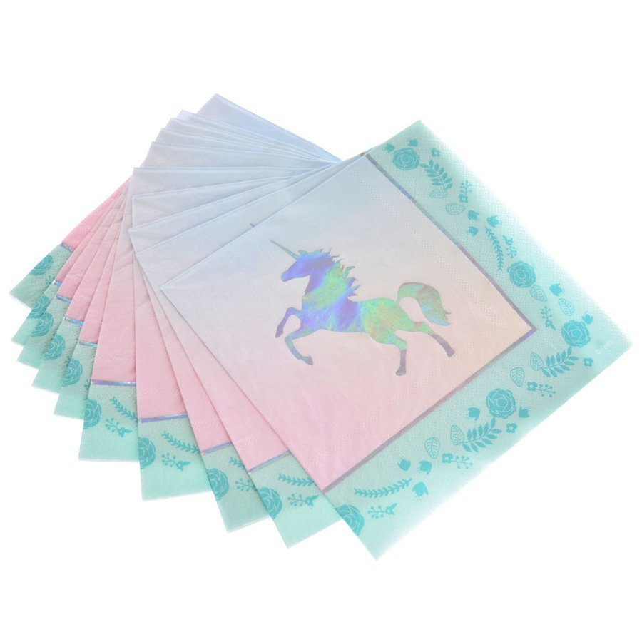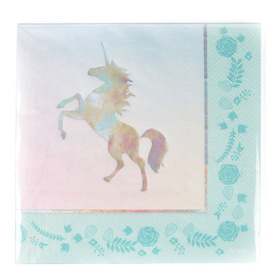 - Papierowe, holograficzne serwetki z oryginalnym nadrukiem jednorożca.