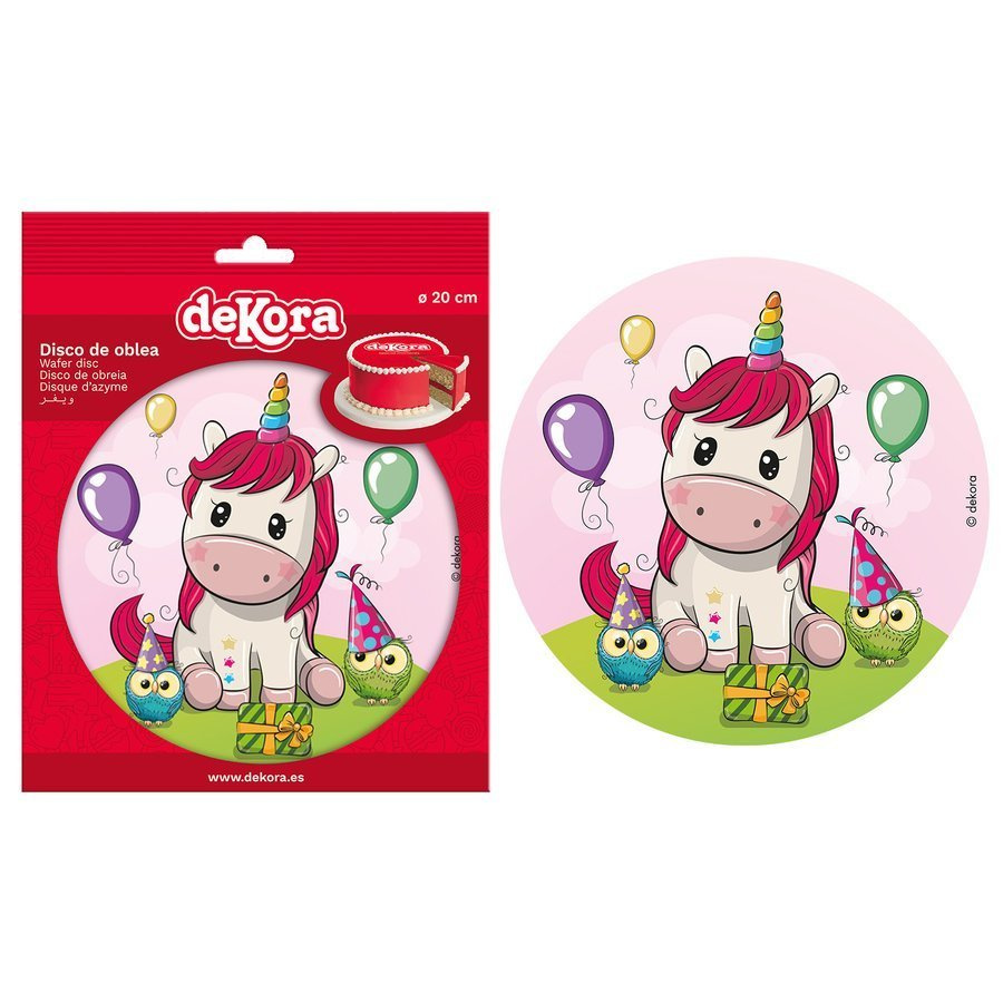 - Jadalny opłatek dekoracyjny na tort - wzór Jednorożec. Fantastyczny dodatek urodzinowy dla małych solenizantów!
