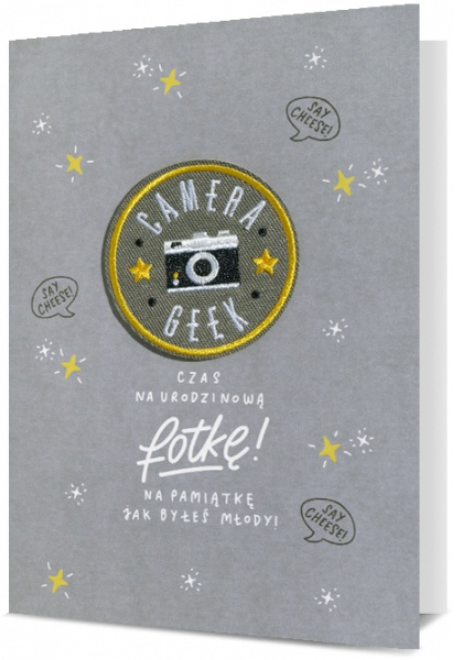 Kartka okolicznościowa urodzinowa z naszywką CAMERA