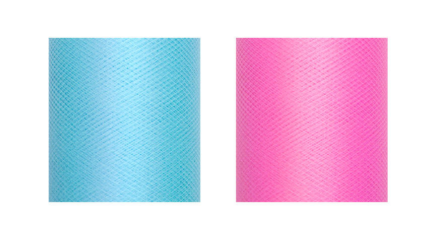 Tiul gładki, sztywny w dwóch kolorach do wyboru: niebieskim i różowym.