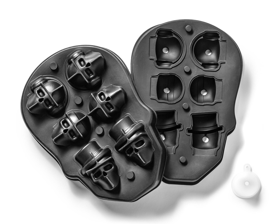 - Foremka z lodowymi czaszkami w nowej odsłonie i w dodatku z lejkiem :) Jeśli lubisz mocne schłodzenie swoich drinków, sięgnij po nasze niebanalne czaszki w kapeluszu, z opaską i słuchawkami...
