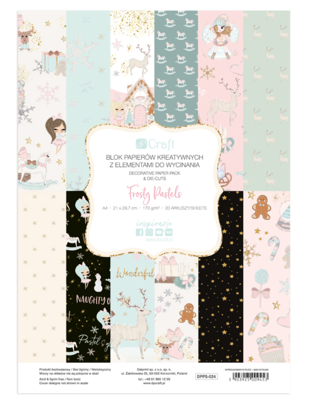 Blok papierów kreatywnych z kolekcji Frosty Pastels pomoże przywołać zimową aurę i stworzyć pełne uroku projekty.
