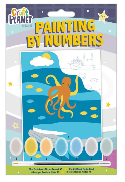 Farba akrylowa zapewnia dobre krycie na tablicy, na której nadrukowany jest prosty wzór z ponumerowanymi polami. Kontury i numery pól są wyraźnie zaznaczone, co pomoże dziecku nanieść odpowiedni kolor w zaznaczonym polu.
