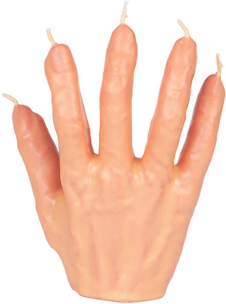 - Zaskakująca i przerażająca świeczka halloweenowa w kształcie dłoni. Wysokość 16 cm.