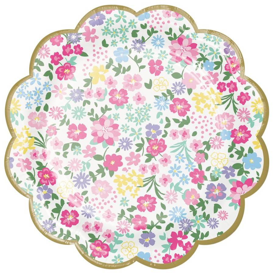 Talerzyki papierowe Tea Party Kwiatki mix 18 cm 8 szt.