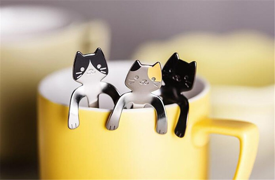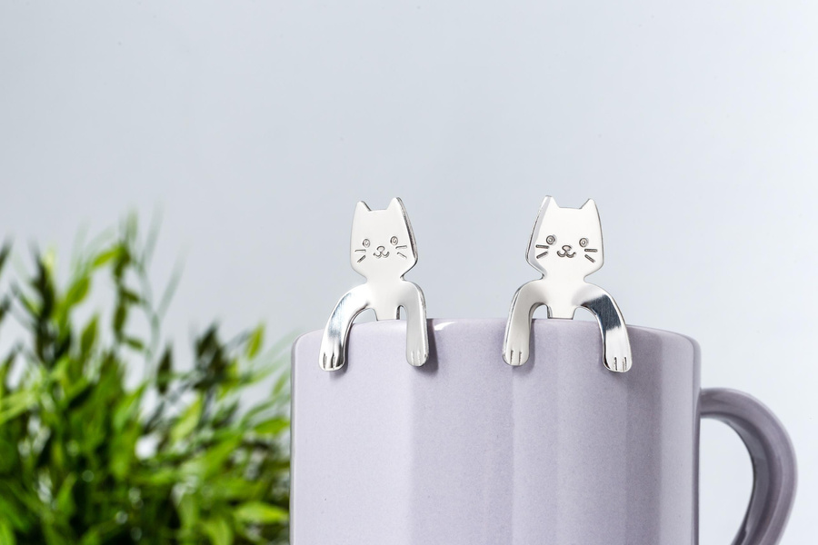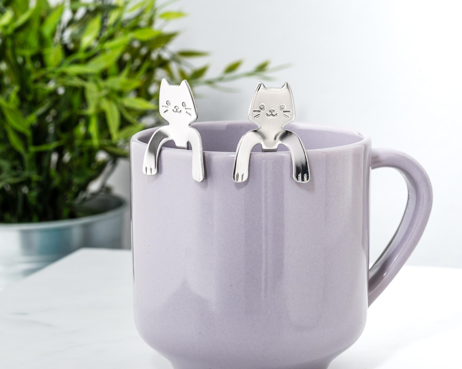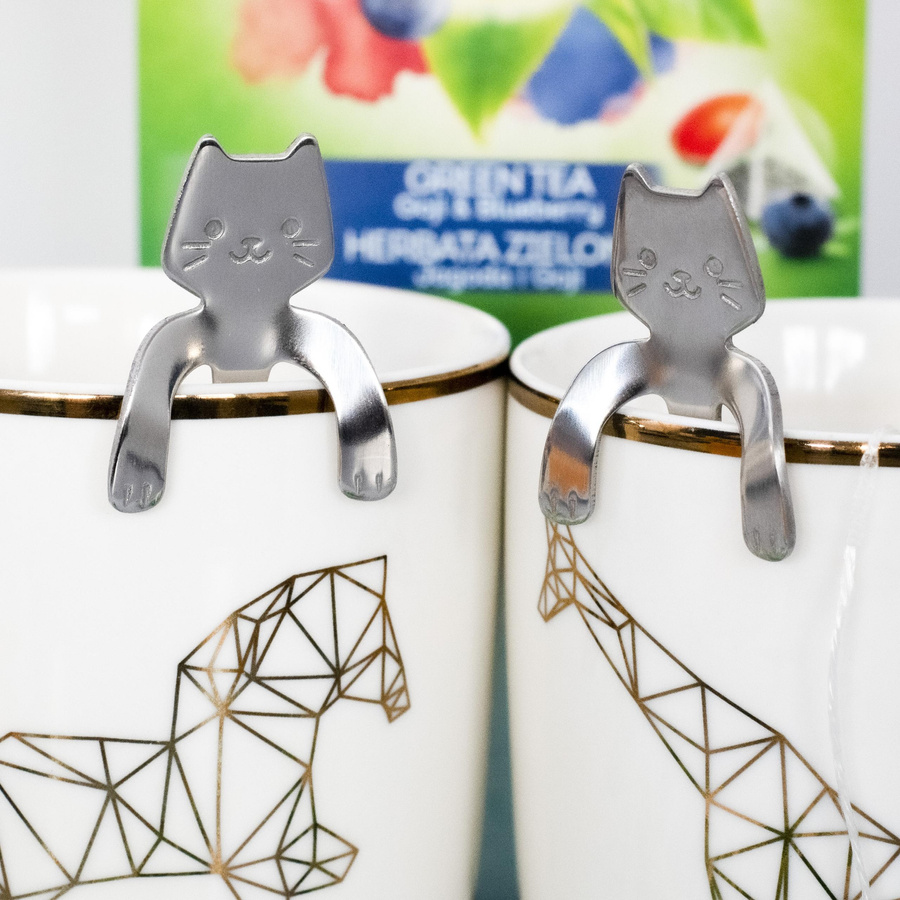 Wesołe mini łyżeczki kotki na dobry początek dnia i poprawę humoru w jego trakcie. Pokochają je nie tylko dzieci. Kotki obejmują łapkami kubek lub szklankę i sprawiają, że trudno im się oprzeć ;)