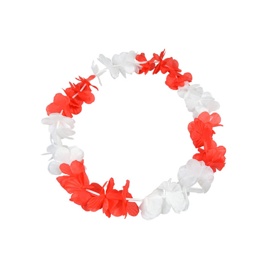 Naszyjnik kibica hawajski biało czerwony 1 szt.