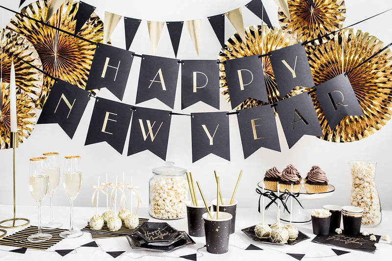 Girlanda baner czarno złoty flagi SYLWESTER 215 cm