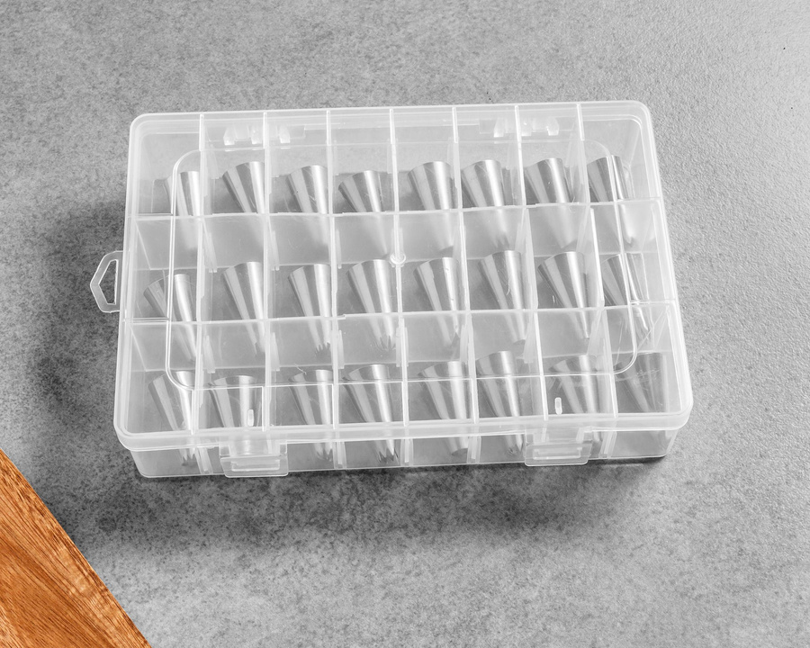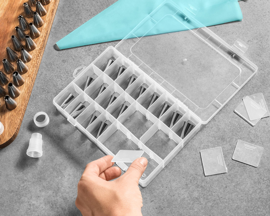 - plastikowy pojemnik do przechowywania zestawu do samodzielnego uzupełnienia przegródek