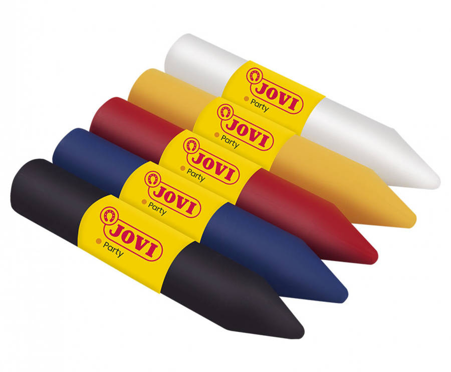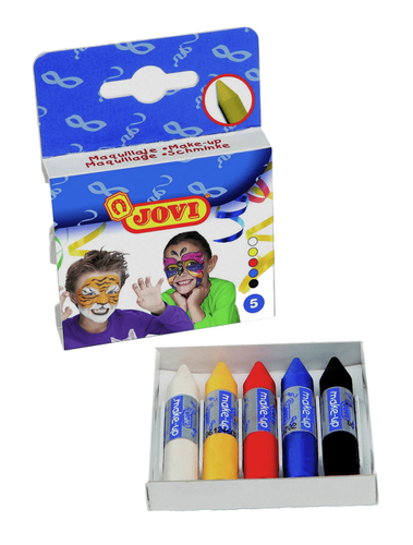 Kredki hiszpańskiej firmy Jovi przeznaczone do malowania twarzy i ciała łatwo się rozprowadzają, trwale pokrywają skórę nawet w trakcie aktywnej zabawy i w łatwy sposób usuwają się pod wpływem wody z mydłem lub mleczka kosmetycznego.