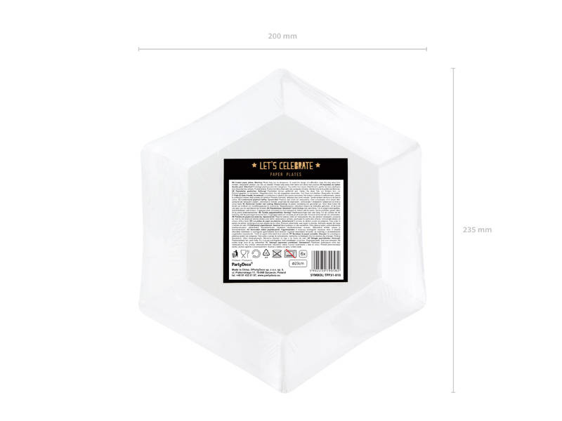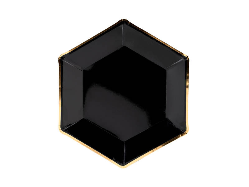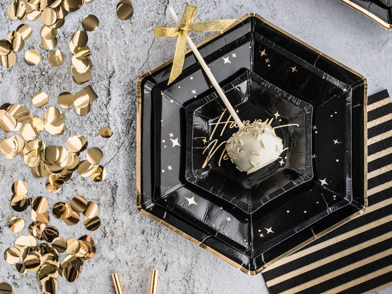 Talerzyki czarne papierowe sześciokąt 23 cm 6 szt. Sylwester Karnawał
