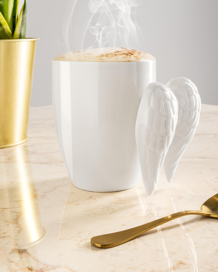 - Piękny i wyjątkowy kubek z anielskimi skrzydłami. Możesz go podarować osobie bliskiej Twojemu sercu lub komuś, kto potrzebuje wsparcia, jak opieki anioła.