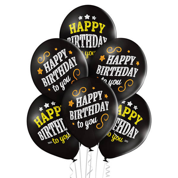 Balony Czarne Happy Birthday 12 cali 1 szt.