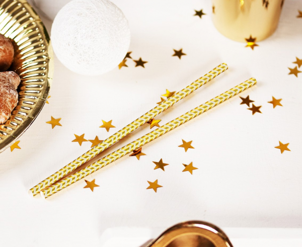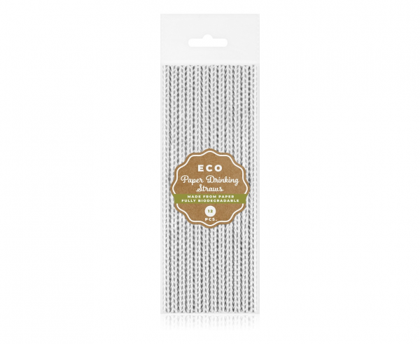 Słomki papierowe metaliczne Szlaczki 12 szt.