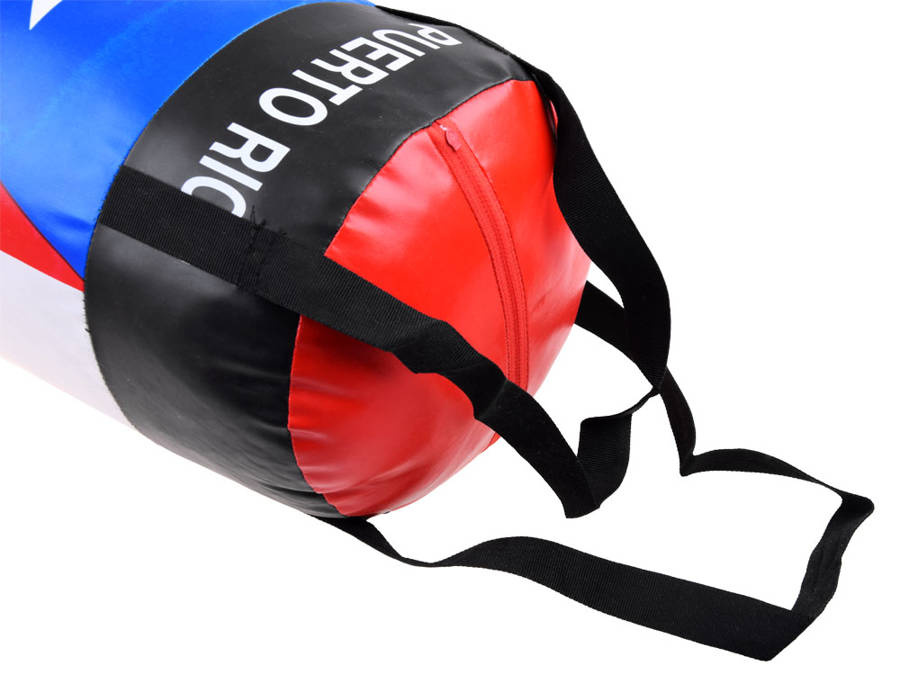 Zarówno worek jak i rękawice wykonane są ze sztucznej skóry z materiałowym wypełnieniem.