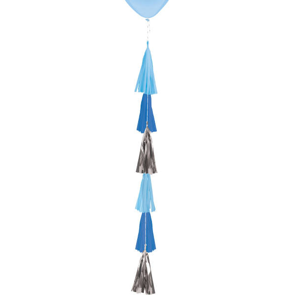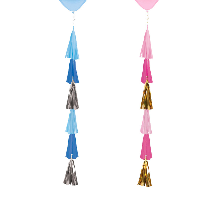 - Papierowo-foliowy ogon do balonów o długości 70 cm. Dostępny w dwóch wersjach kolorystycznych: niebiesko-srebrnej i różowo-złotej. Idealny na Baby Shower.