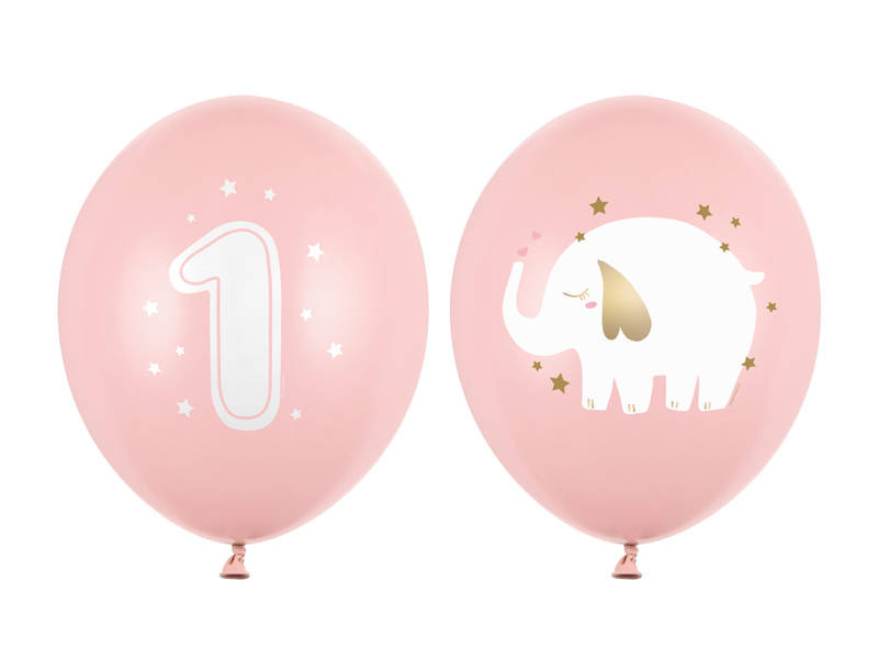 Mix 2 wzorów - różowy balon z białą cyfrą "1" lub różowy balon z nadrukiem słonika.