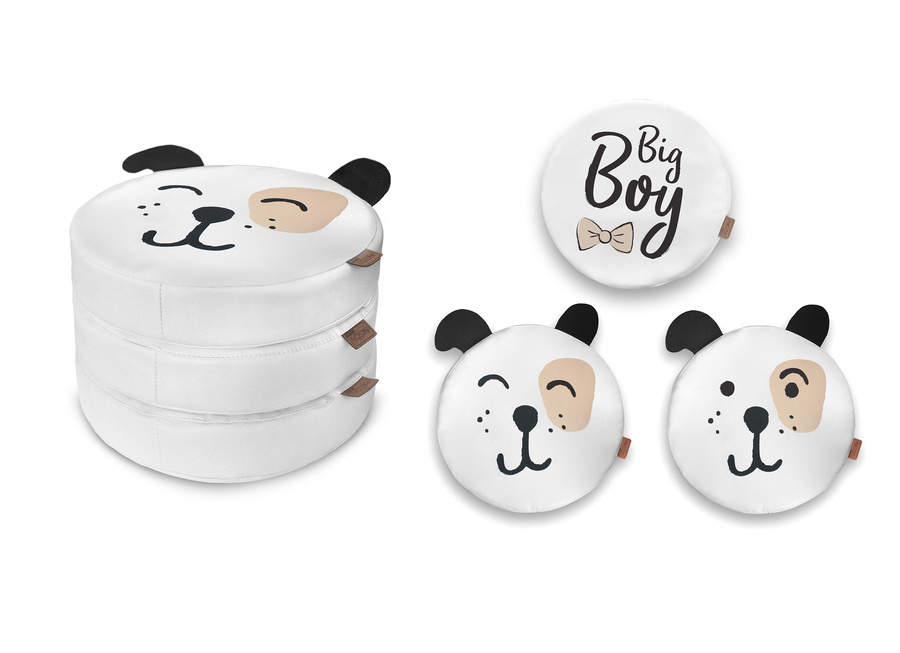 - Dzięki swojej strukturze są bardzo łatwe do dezynfekcji. Poduszki w kolorze białym, z nadrukiem z uroczym pieskiem.