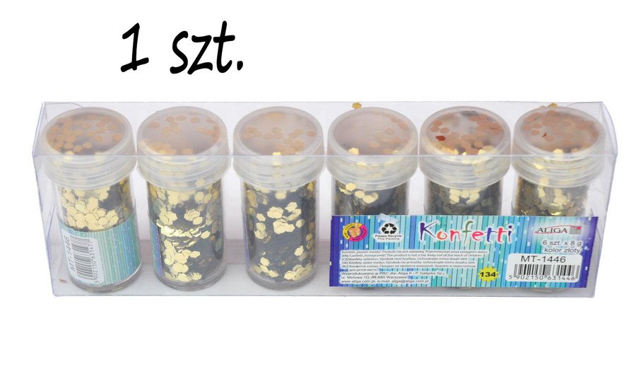 - Konfetti typu "plaster miodu", dostępne w dwóch kolorach: złotym i srebrnym. Waga 8g. Cena za sztukę.