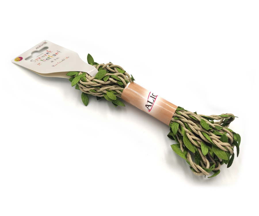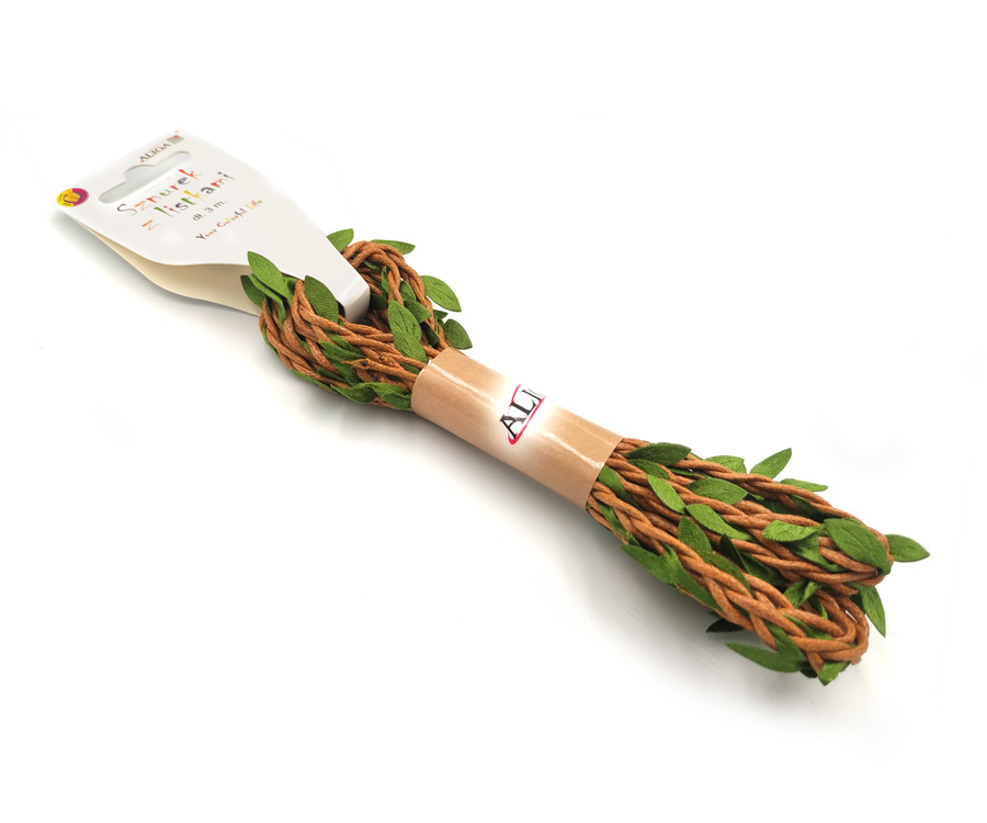 Sznurek dekoracyjny z listkami 3m mix wzorów 1 szt.