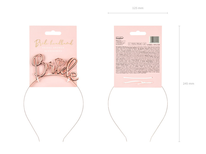 - Wyjątkowa i elegancka opaska metalowa z napisem Bride. Niezbędny dodatek do kreacji przyszłej Panny Młodej.