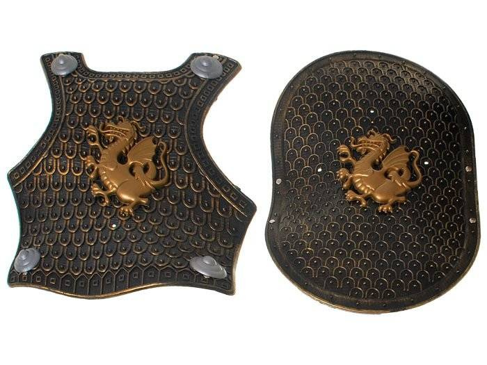 Zbroja w całości wykonana z giętkiego plastiku, bezpieczna. Zbroja bardzo ładnie i starannie wykonana z herbem smoka.