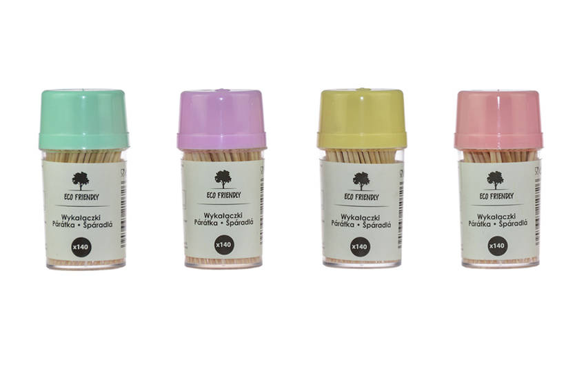 - Drewniane wykałaczki w baryłce. Cena za opakowanie 140 sztuk.