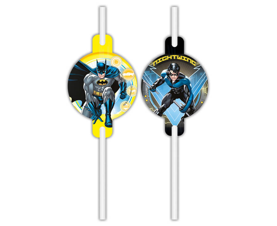 Słomki do picia papierowe z medalionem BATMAN 4 szt.