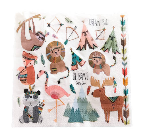 Papierowe, dwuwarstwowe serwetki z uroczym nadrukiem ze zwierzątkami.