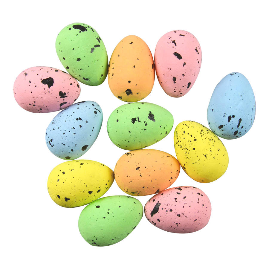 - Dekoracyjne przepiórcze jajeczka, niezbędne podczas przygotowywania wielkanocnych i wiosennych dekoracji. Wykonane ze styropianu, zestaw zawiera 12 szt.