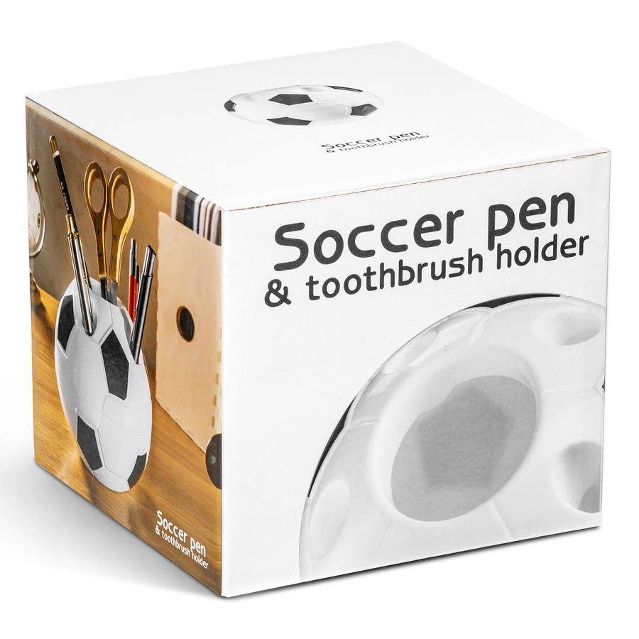 Ogarnij bałagan na swoim biurku i w łazience z naszym piłkarskim przybornikiem, by porządek mieć już na okrągło :) Fajny i praktyczny przybornik, który każdy piłkarz amator chciałby mieć na swoim biurku lub w łazience, by podkreślić swoją sportową pasję. Pomieści niezbędne przybory szkolne i biurowe lub przybory toaletowe w łazience. Możesz go też otworzyć i również w środku przechowywać różne drobnostki.