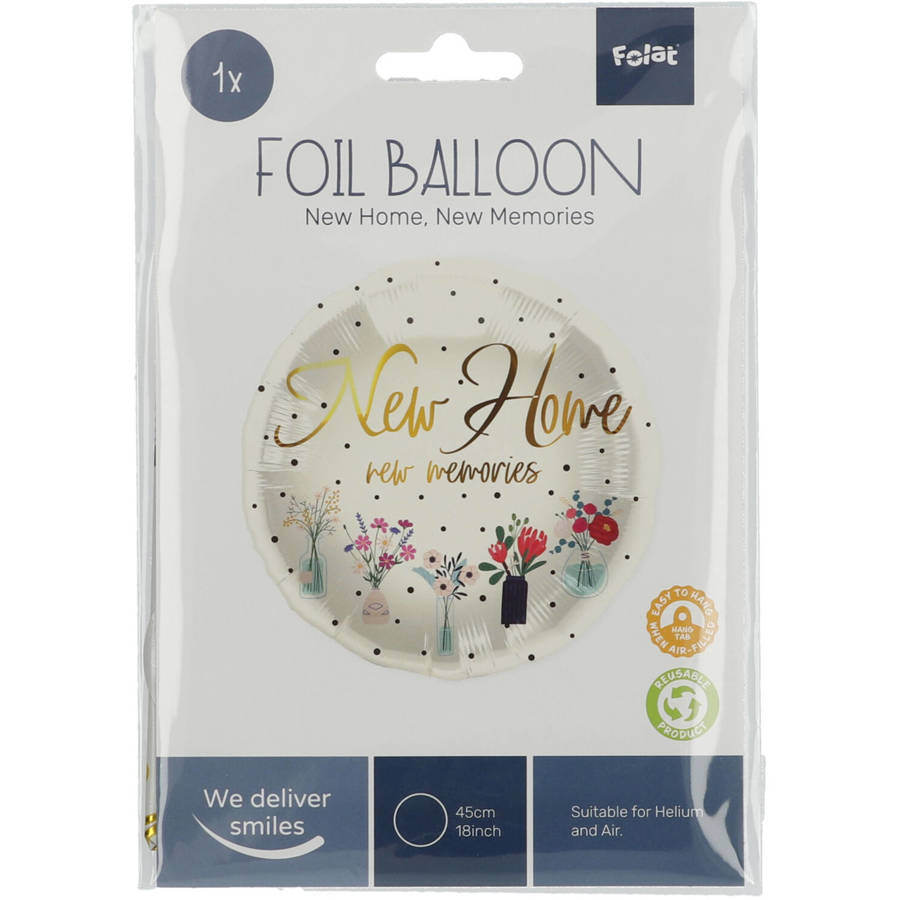 Śliczny balon foliowy z napisem "New Home, new memories", uniwersalny i idealny na specjalne okazje.
