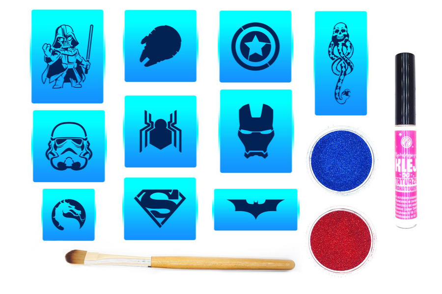 Szablony do tatuaży brokatowych zestaw startowy - Superbohaterowie