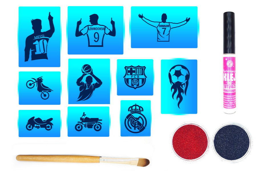 Szablony do tatuaży brokatowych zestaw startowy - Sportowe