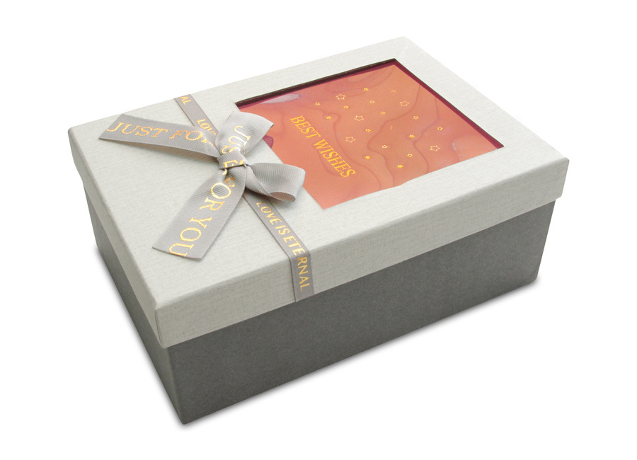 Pudełko prezentowe z okienkiem kokarda SZARY 1 szt.