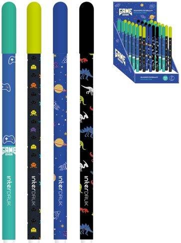 - Zamykany na skuwkę. Niebieski wkład. Zakończony gumką, która umożliwia szybką i estetyczną korektę napisanego tekstu, bez użycia korektora czy przekreślania.