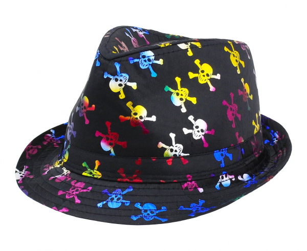 Fantazyjny Kapelusz w kolorowe czaszki - świetny element charakteryzacji w czasie przedstawień, spektakli, animacji, zabaw karnawałowych i innych.