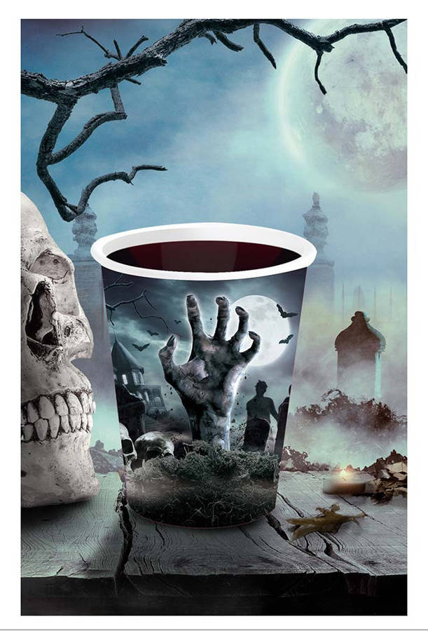 - Kubeczki papierowe z motywem cmentarnym, idealne na Halloween, o pojemności 240 ml. Zestaw 6 sztuk.